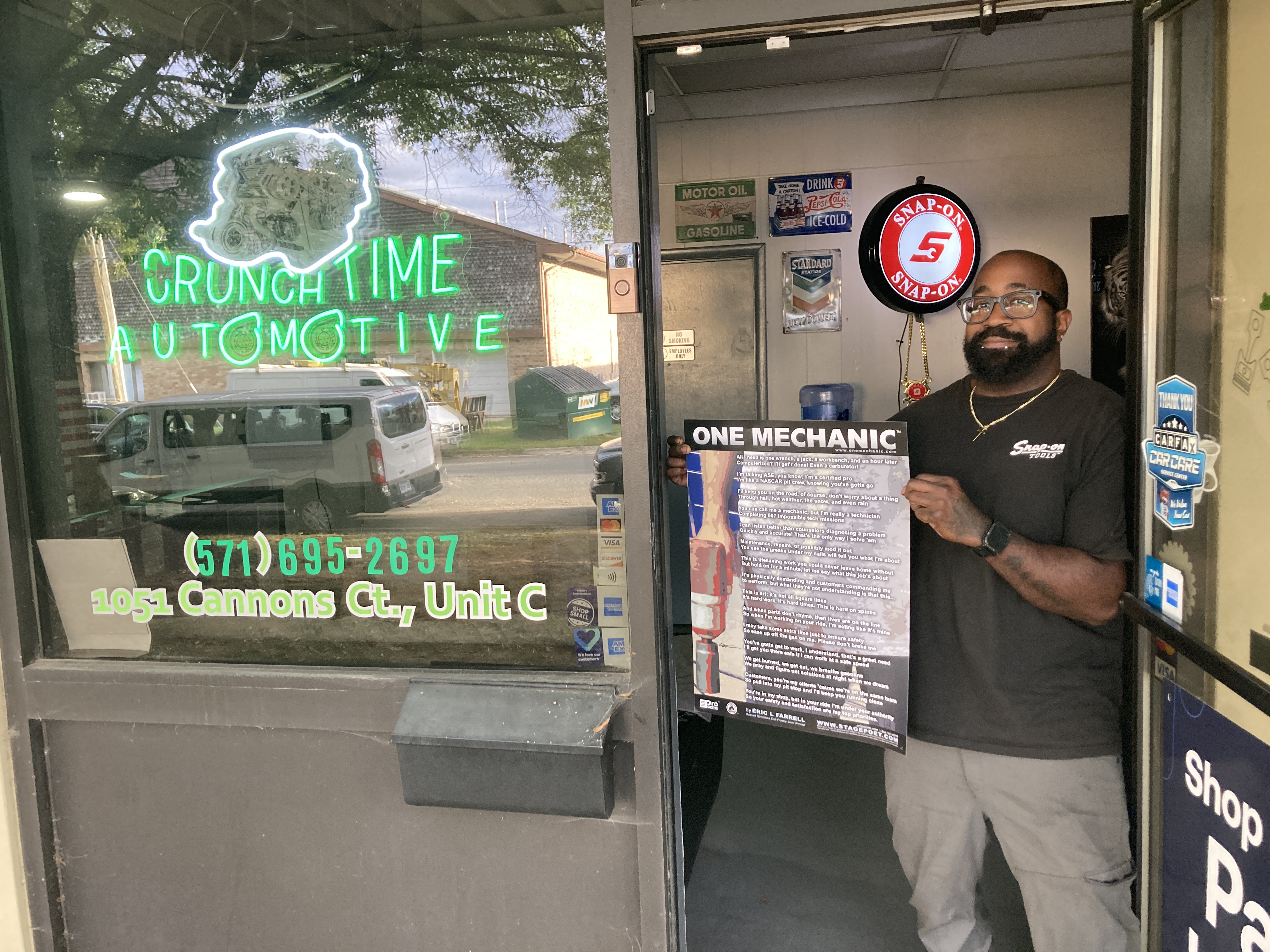 Crunch Time Automotive 1051 Cannon Court, Unit C 22191 | 571-695-2697 (shop); 571-408-4289 (mobile) (2025: Darnell Gray)
